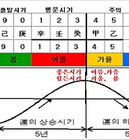 위 그래프는 질문자의 매년 운세인 세운의 흐름입니다. 운이 상승하는 시기 즉 돈이 들어와 모이는 시기, 재물운이나 금전운이 좋은 시기는 여름과 가을을 지날 때며, 운이 하락하는 시기 즉 돈이 빠져 나가는 시기, 재물운이나 금전운이 나쁜 시기는 겨울과 봄을 지날 때입니다.